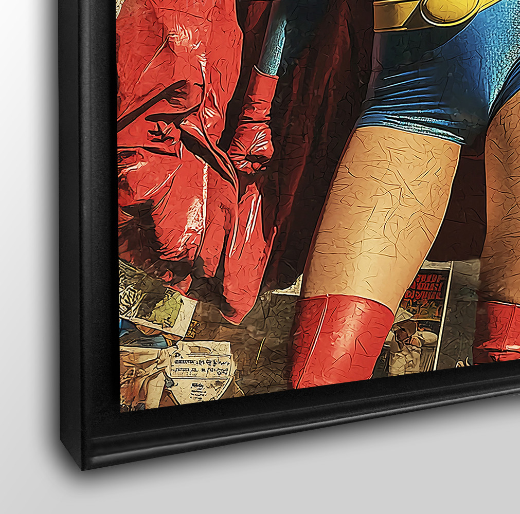 Le cadre américain en aluminium laqué noir ajoute une touche de sophistication et de modernité à vos œuvres. Son design minimaliste met en valeur l’image, créant un léger effet de flottement entre l’œuvre et le cadre pour un rendu visuel profond.